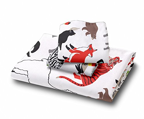 Twin Folk Animal Duvet Cover Set with 1 Pillowcase for Kids Bedding - Double Brushed Microfiber by Where The Polka Dots Roam (68" L X 86" W)