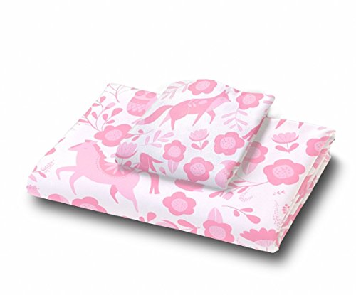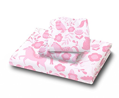 Full/Queen Duvet Cover Pink Folk Animals - Set with 2 Pillowcases for Kid Bedding by Where The Polka Dots Roam (L 90in x W 92in) …