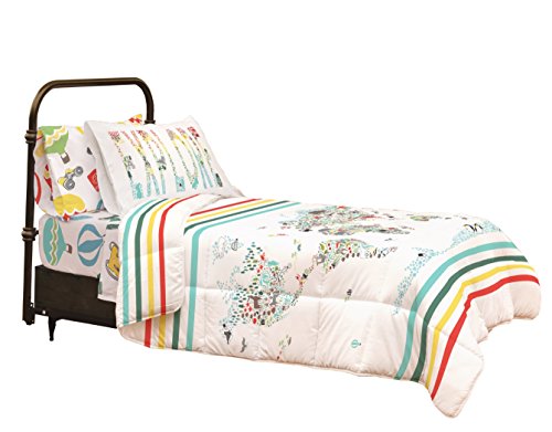 Twin World Map Reversible Duvet Cover Set with 1 Pillowcase for Kids Bedding - Double Brushed Microfiber Does Not Shrink or Wrinkle by Where The Polka Dots Roam (68" L x 86" W) (68" L X 86" W)