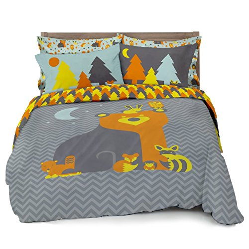 Twin Reversible Woodland Creatures Duvet Cover Set with 1 Reversible Pillowcase for Kids Bedding -Double Brushed Ultra Microfiber Luxury Bed Sheet Set By Where The Polka Dots Roam (66" L X 86" W)