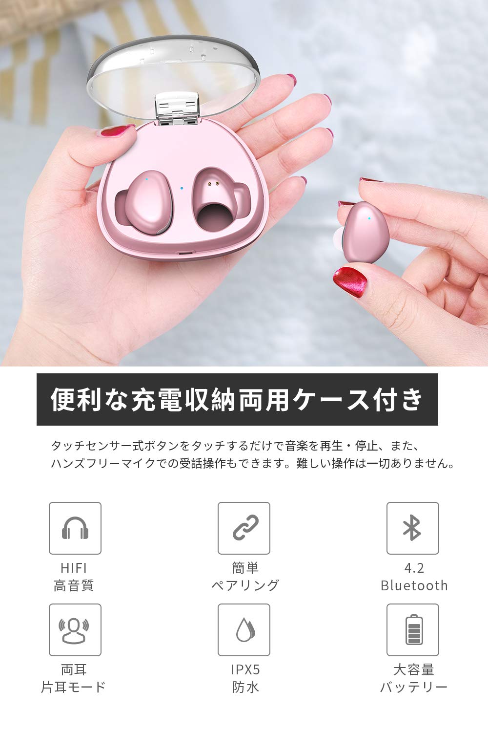 【良質なチップ搭載されたbluetooth ヘッドセット】先端で良質なチップを搭載することによって安定性を高め、音漏れ、音飛び、音ズレなどの問題が一切なし、音楽やラジオのきれいな音声を楽しむことができます。片耳でも両耳でも使用可能で、左右を繋ぐケーブルはありません、全くケーブルのないストレスフリーな新しいbluetooth ヘッドセットです。完全にハンズフリーで運転、会議、クッキングまたはスポーツの時にミュージック、通話をエンジョイ可能です。