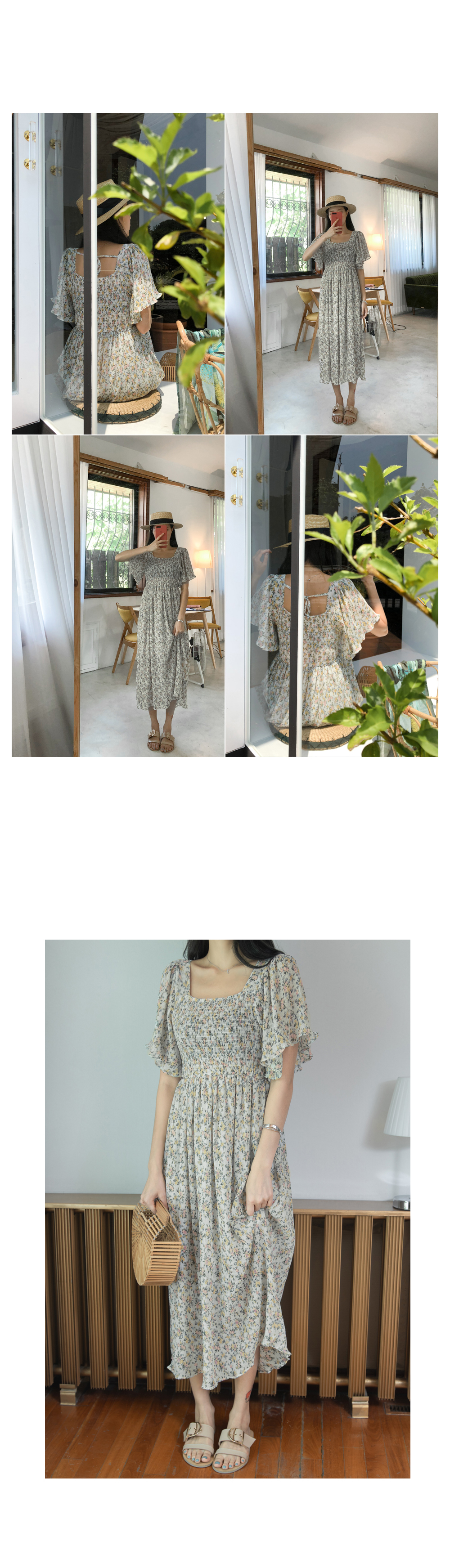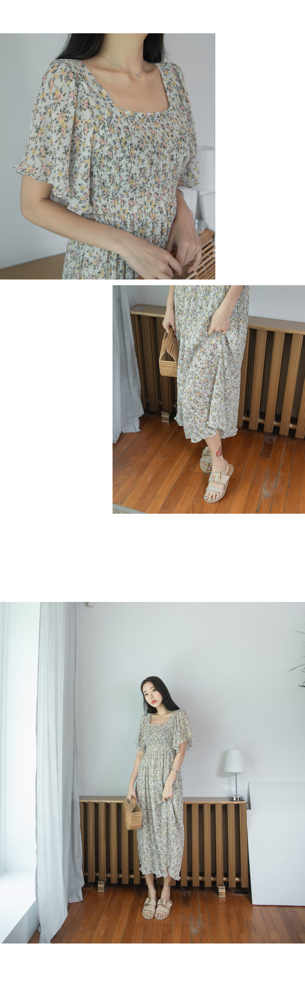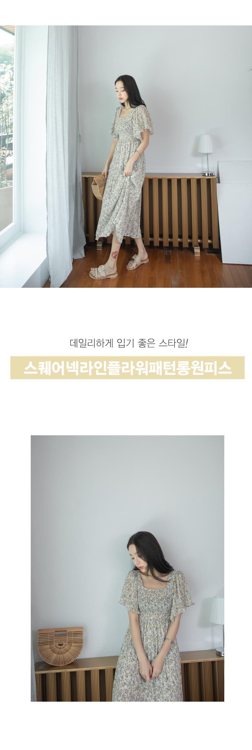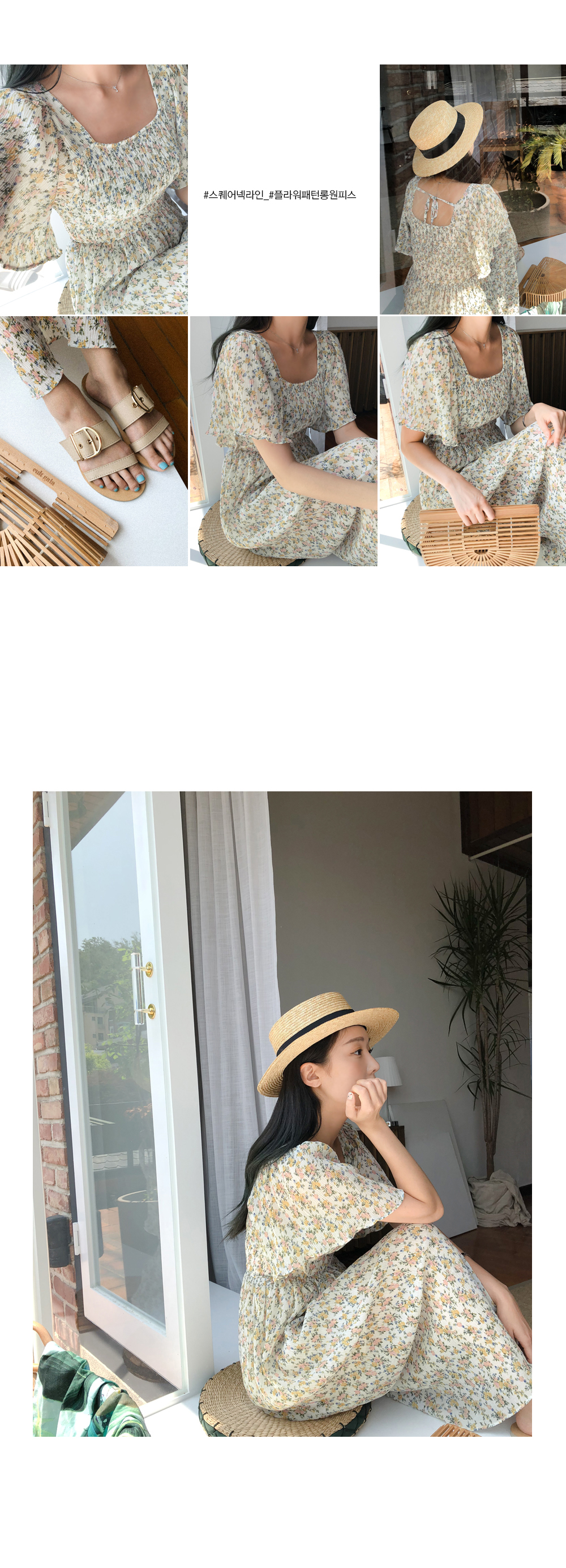 스퀘어넥라인의 잔잔한 플라워패턴이