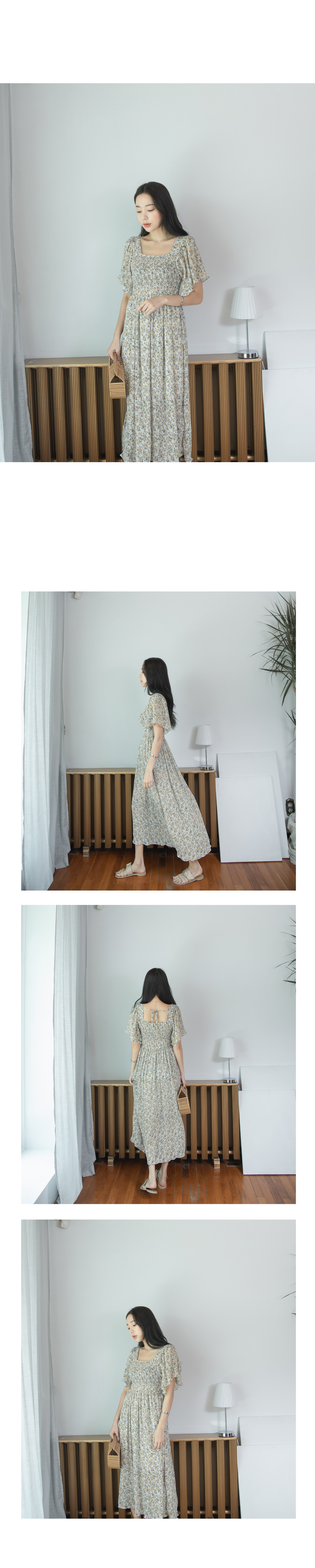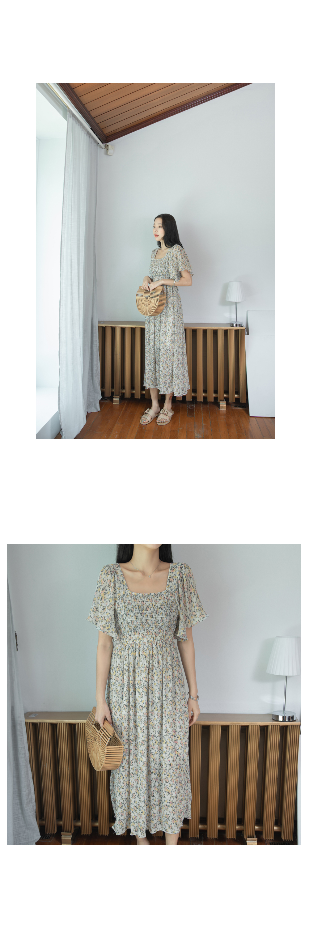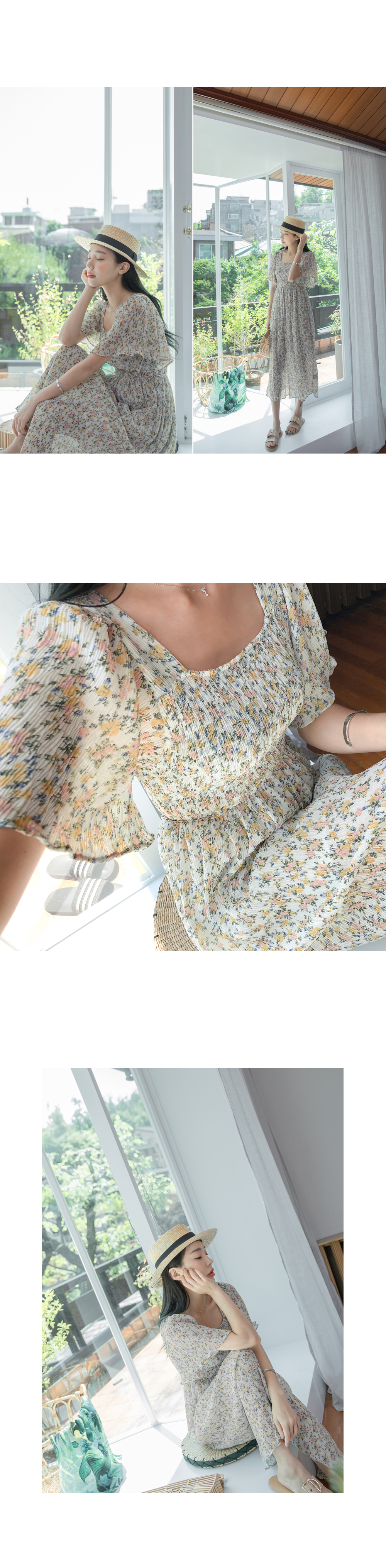 스퀘어넥라인의 잔잔한 플라워패턴이