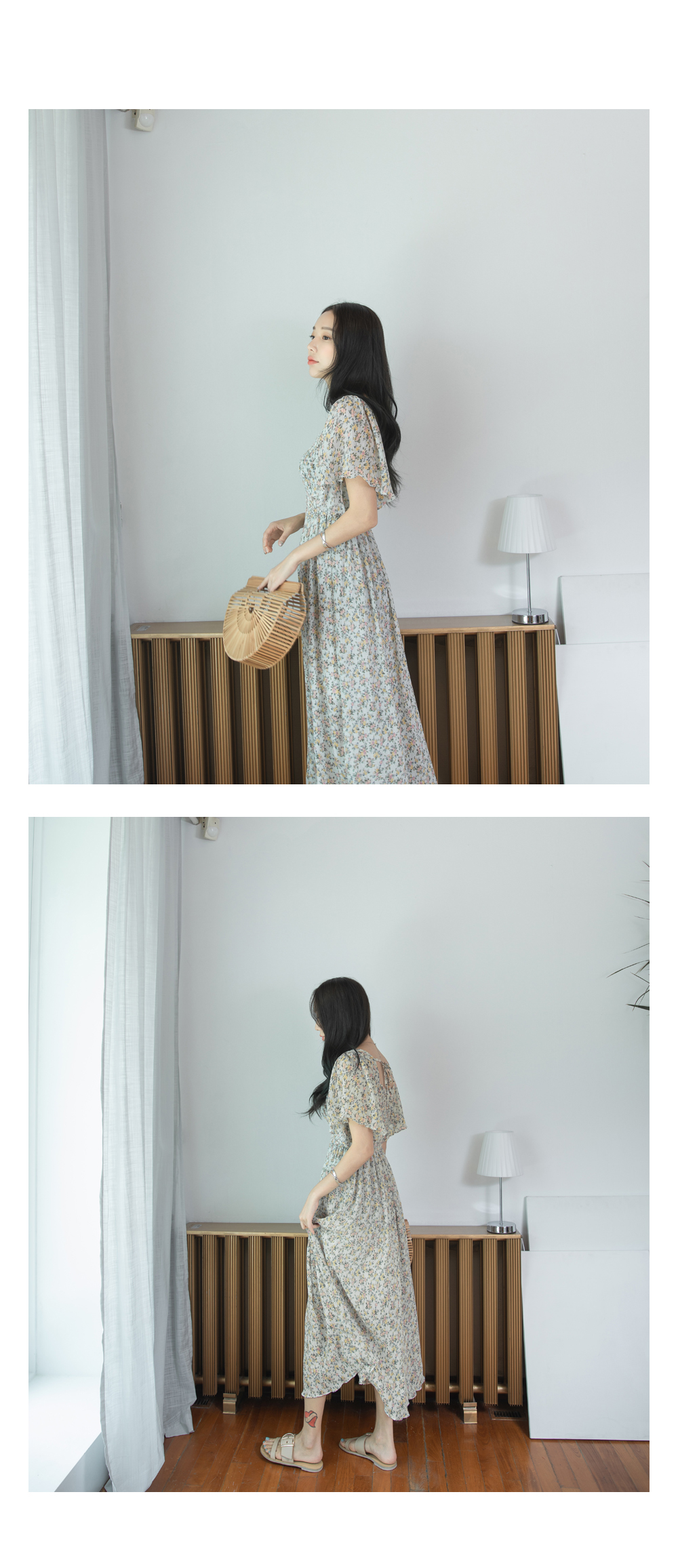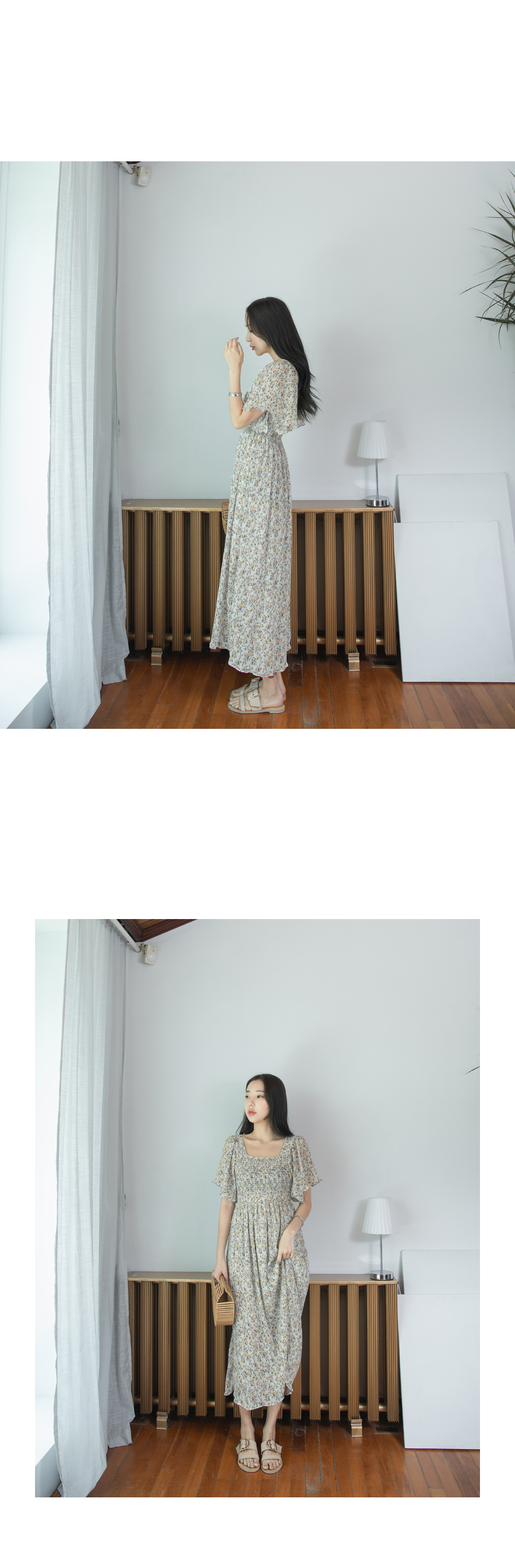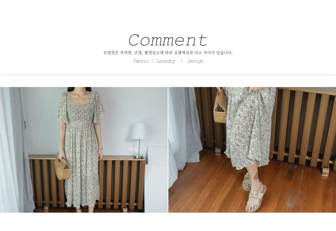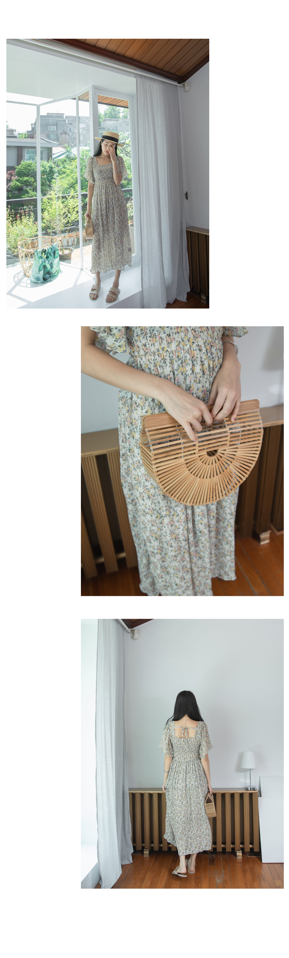 스퀘어넥라인의 잔잔한 플라워패턴이