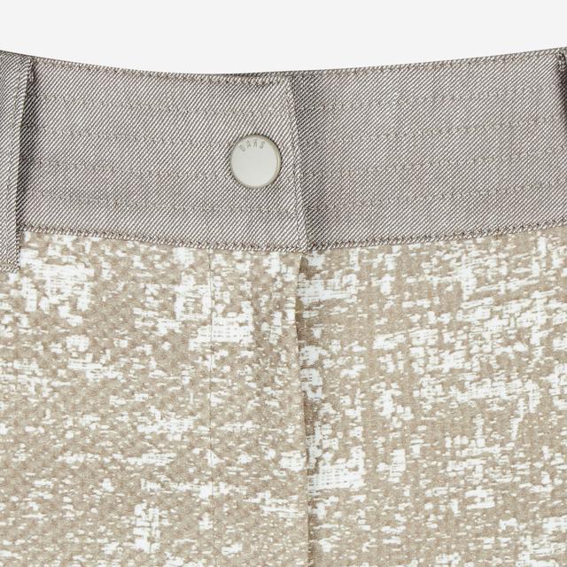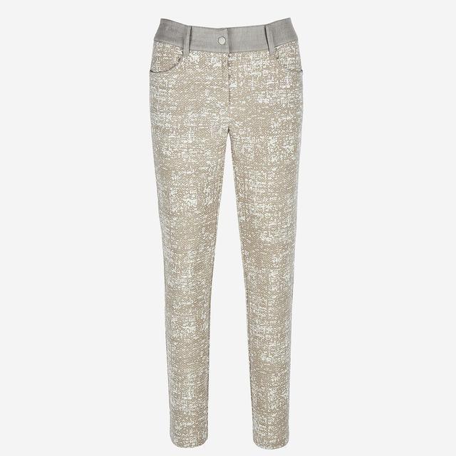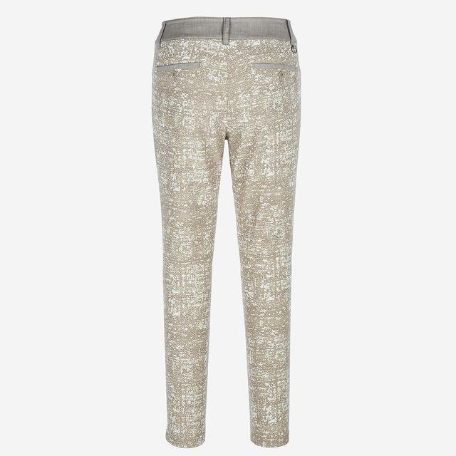 유니크한 느낌의 패턴 장식에 허릿단 컬러 배색으로 포인트를 준 팬츠입니다.