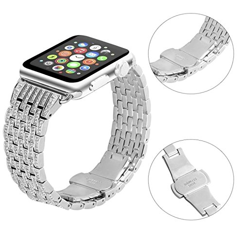 -. Title : Apple Watch Band, Amaztar Luxurious Crystal Rhinestone Diamond Stainless Steel Bracelet Strap (Silver, 38mm)