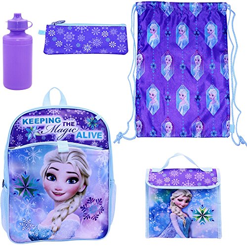 -. Title : Disney's Frozen Elsa 5-pc Backpack Set with Lunch Bag, Cinch Sack, Pencil Case and Water Bottle