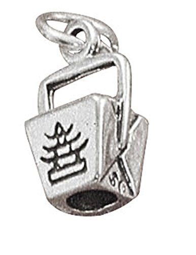 -. Title : Sterling Silver Men's 1.5mm Box Chain 3D Chinese Food To Go Pail Pendant Necklace