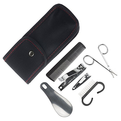 Studio : Perfect Life Ideas Publisher : Perfect Life Ideas Product Description 7 Piece men's grooming set includes shoe horn, nail bush, pocket comb, safety trimmer scissors, finger nail brush, finger nail clipper, toe nail clipper, and a compact travel carry case to carry all your nail and hair care products with you wherever you go and for use anytime you want to have a salon treatment. Perfect for use at home or on the go when you are travelling. Simple and Elegant personal grooming kit for men will give you the podiatrist nail treatment with the nail brush, and nail clippers and other hair and nail care products that you can carry with you at all times, and have handy use anytime and anywhere. Brand: Perfect Life Ideas -tm. Satisfaction Guaranteed. 0