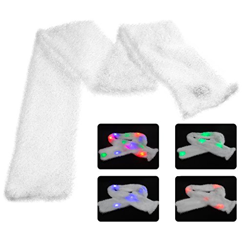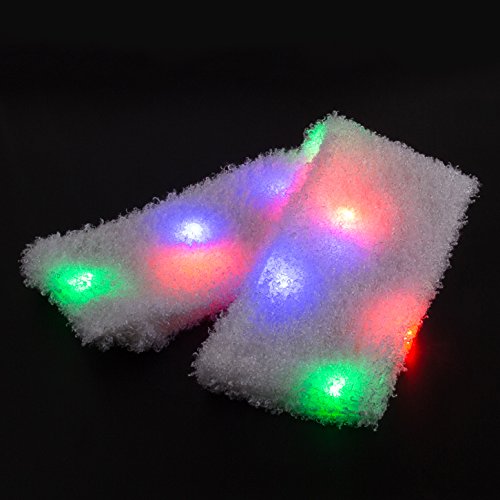 Features: 1. With 12 bright LEDs and 6 COOL flashing light modes, you'll be the star at any light shows, birthday party, rave, EDM, Dubstep, cosplay, disco, concert, clubbing, dance halls, stage performances, holidays... 2. The Light up White Scarf will also be the perfect toy gift for your kids or nephew, niece, granddaughter, grandson, etc. Or as amazing light up toy for your kids during the camping trip. Enjoy happy family/party time and have tons of fun with our quality products!