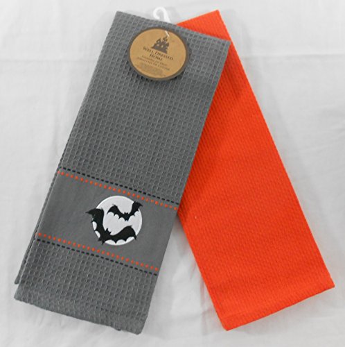 Well Dressed Home Halloween Bats and Orange Kitchen Towels Set of 2