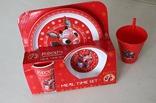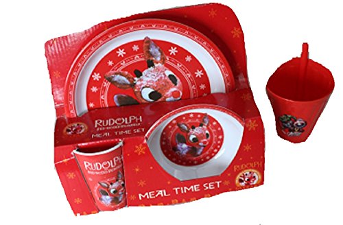 Babies Toddlers 3 Pieces Rudolph Eating set with extra soup Cup 2 Counts
