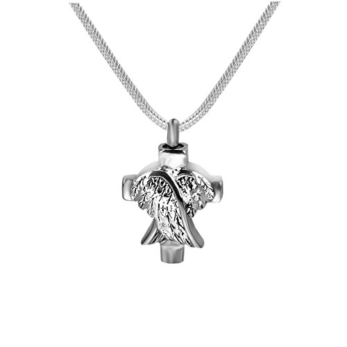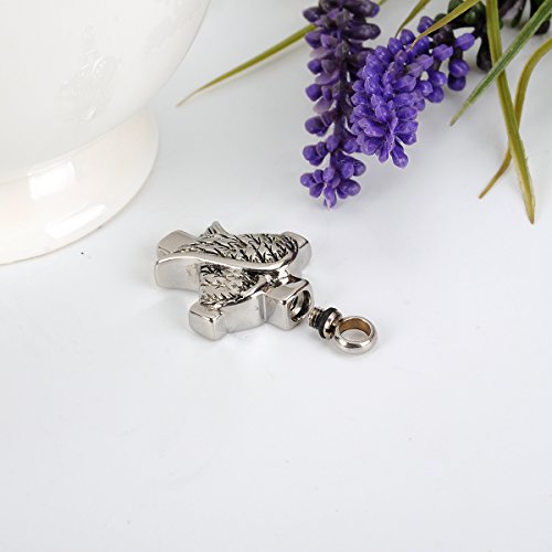 GIONO Cremation Jewelry Stainless Steel Angle Wing Cross Charm Urn Pendant Memorial Ash Keepsake Necklace