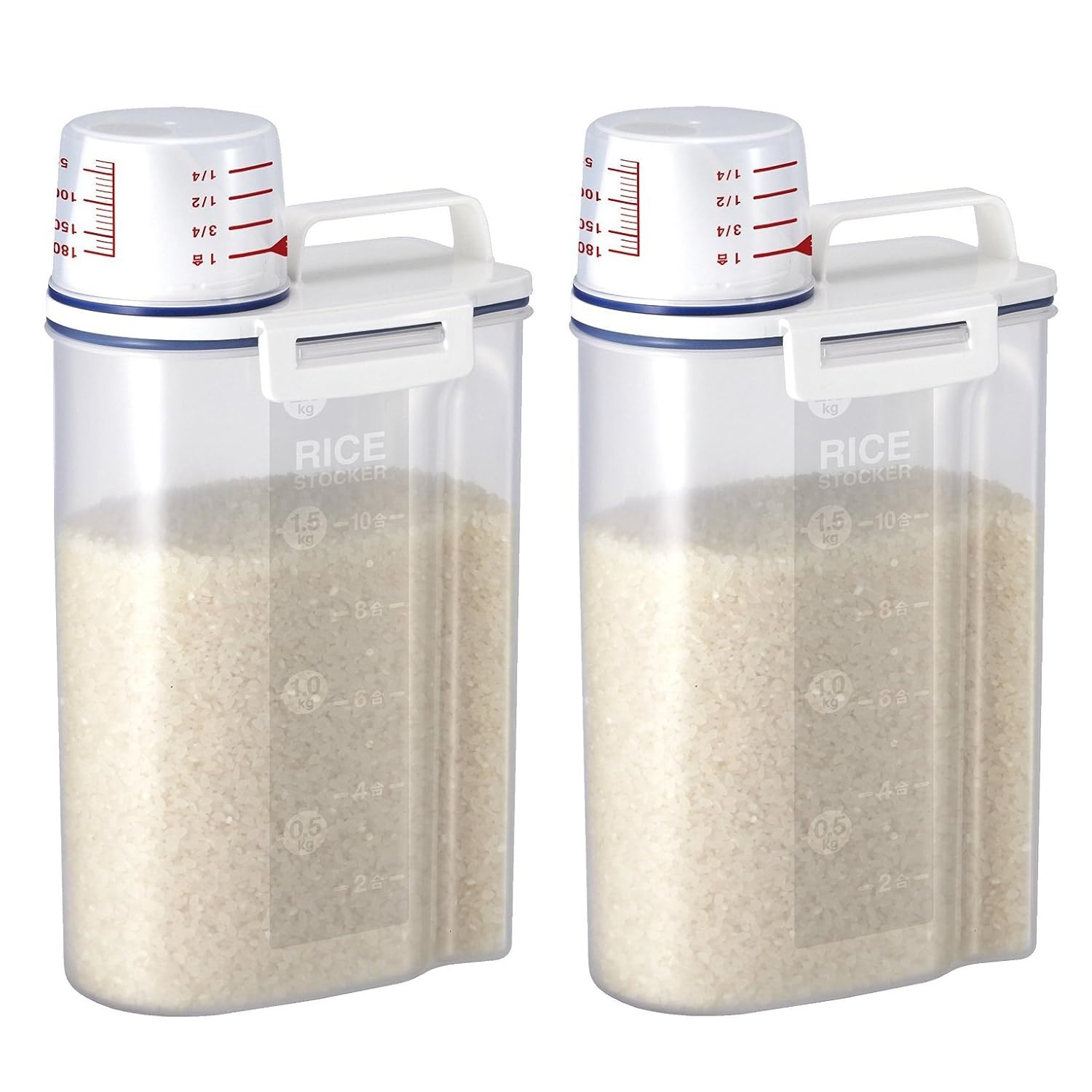 サイズ:約16.7×11×29.3cm 本体重量:約250g 材質:本体・フタ・軽量カップ/PP、パッキン/シリコーンゴム 原産国:中国 容量:2L 付属品:目盛り付軽量カップ
