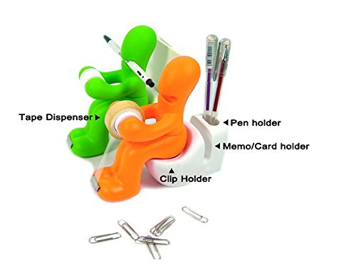 Leoie the Butt Station - Desk Accessory: Tape Dispenser Pen Memo Holder Clip Storage (Random Color)