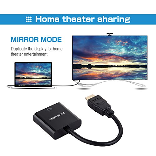 Stable performance, and not easy to skip the screen, NEXBOX HDMI adapter built-in active IC chip converts HDMI digital signal to VGA analog signal, with this converts gadget, you can enjoy HD video in large screen.