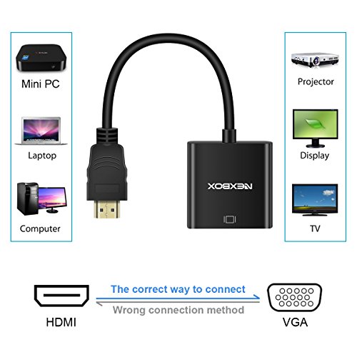NEXBOX HDMI to VGA adapter is ideal for you to connect your HDMI compatible device (e.g. personal computer, laptop) to a VGA compatible PC monitor or projector.
