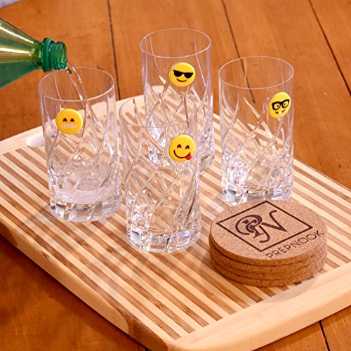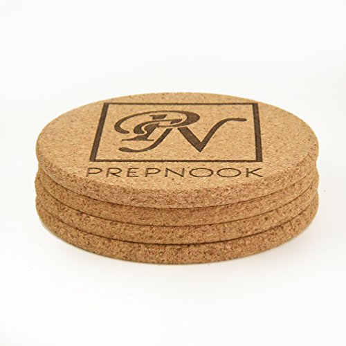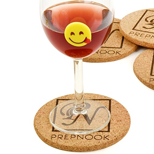 PrepNook:Absorbent Cork Coasters For Drinks. 4pcs Cork Coaster Set with 4 Silicone Drink Markers each. Protects Furniture Surfaces. Reusable Packaging and...