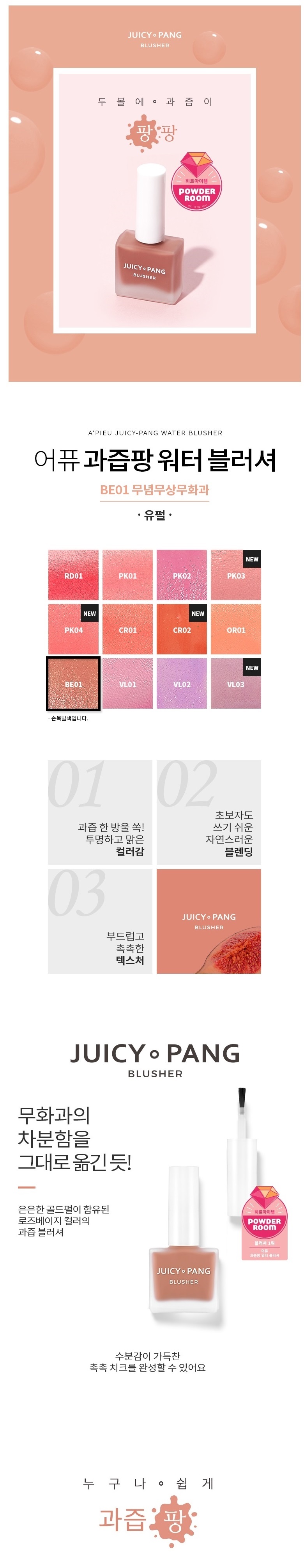 [A`PIEU] Juicy Pang Water Blusher #BE01 FigRose beige color blush with light gold pearl