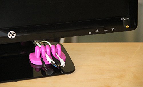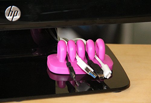 Desktop Cable Organizer and Cable Holder for Cable Management of USB Cables, Power Cords & Charging Cables - Bundled with 2 Bonus Cable Clip (Pink)