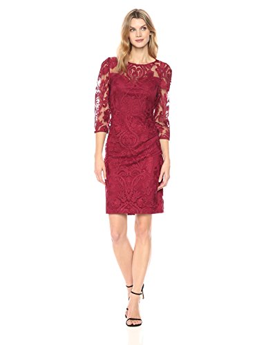 The luxurious embroidery on our classic, shift cocktail dress elevates this look to be worn to your next special occasion. Our stunning embroidered dress features an illusion neckline and sleeves is a great choice for a mother of the bride or groom, guest of wedding, or formal event.Feature