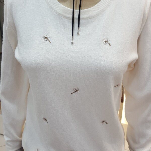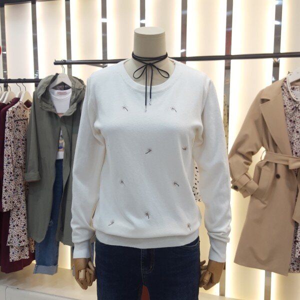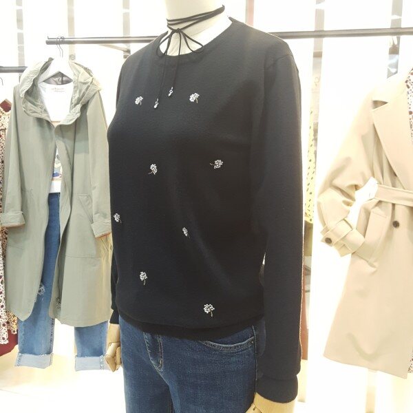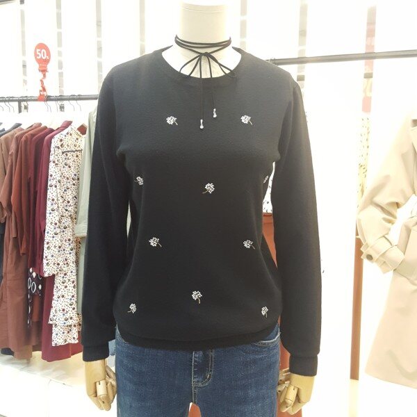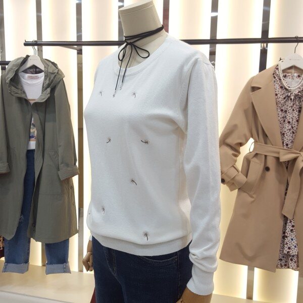 기본 라운드넥에 안개꽃자수가 포인트되어사랑스럽고 고급스러운 니트티입니다.레이온혼방폴리소재로 촉감이 부드럽고 신축성이 뛰어납니다.