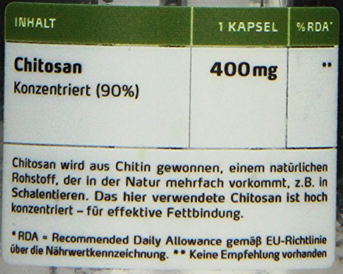 -. Feature : 1 Kapsel = 400mg Chitosan, konzentriert / Ohne künstliche Zusatzstoffe / Ohne Gentechnik (Non GMO) / Ohne Gluten, Lactose, Zucker