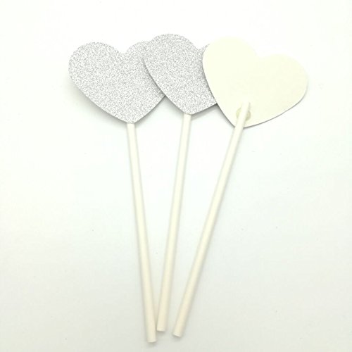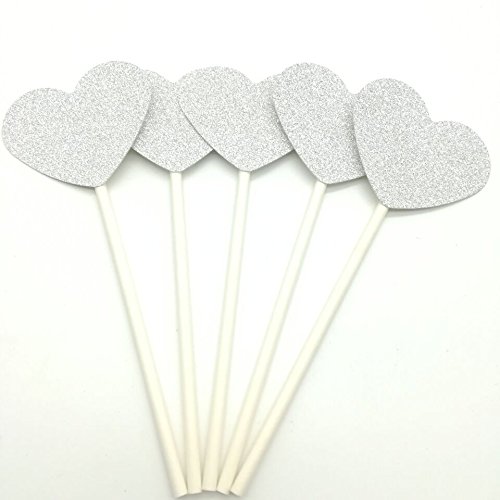 Paity 24PC silver Lovely Heart Cupcake Toppers Birthday Cakes Topper Picks Kids Birthday/Wedding Festival Party Decoration Supplies