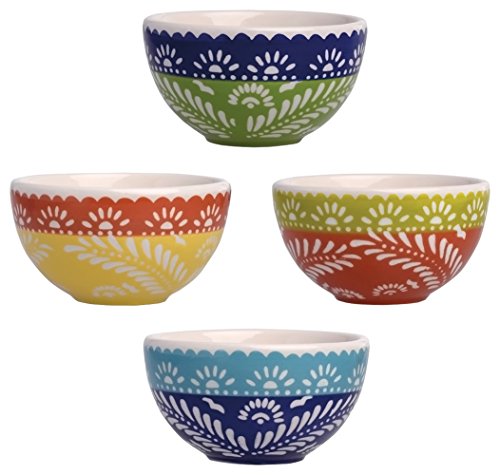 Boston International Viva La Fiesta Ceramic Bowls (Set of 4), 4.5", Green/Blue/Orange