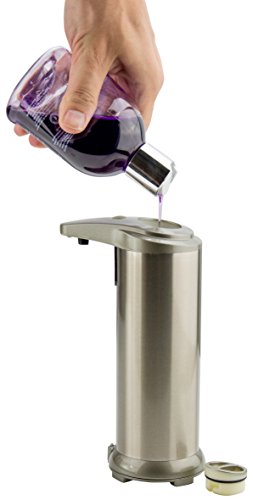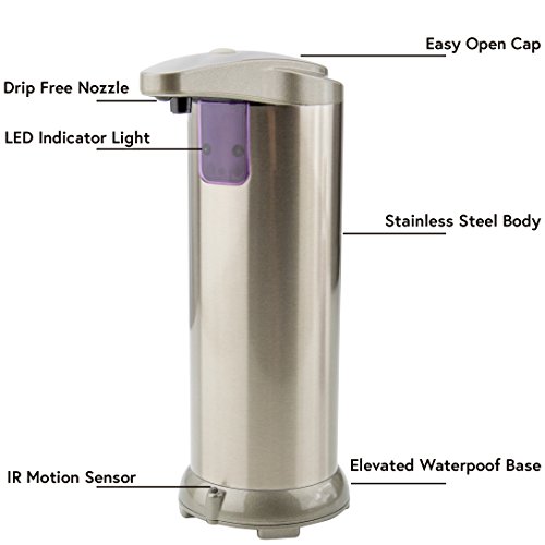Easy to Use - Intelligent motion sensor dispenses liquid soap with a wave of your hand. No need to physically touch the soap pump and spread germs, batter, or whatever else that needs to be cleansed from your hands. Keeps your hands and kitchen clean!
