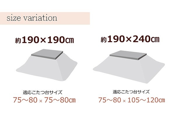 【適応サイズ】75~80×105~120cmのこたつ台に適応