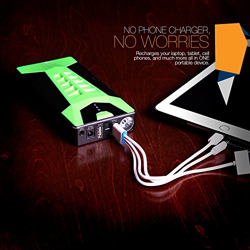 - MORE THAN JUST AN OLD SCHOOL EMERGENCY KIT - No phone charger? No worries! The SCORPION not only brings your car battery back to life, it also recharges your laptop, tablet, cell phones, bluetooth speakers (you know you always forget to charge it right before you want to use it the most!), and other electronics all in ONE portable powerbank device. It even has a built-in flashlight that sends out SOS distress signals! All SCORPION components fit easily within the included zippered case.
