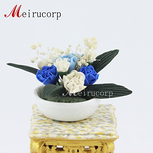 BEAUTIFUL MINI POTTED 1/12 SCALE DOLLS HOUSE MINIATURE BLUE AND WHITE FLOWER