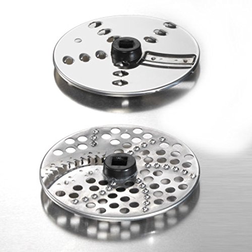 Mit 2 Edelstahl-Wendescheiben fur 5 Funktionen: - Multifunktions-Wendescheibe aus Edelstahl zum Raspeln und Schneiden - Multifunktions-Wendescheibe aus Edelstahl zum Reiben und Stiften von Mini-Julienne oder Mini- Pommes Frites