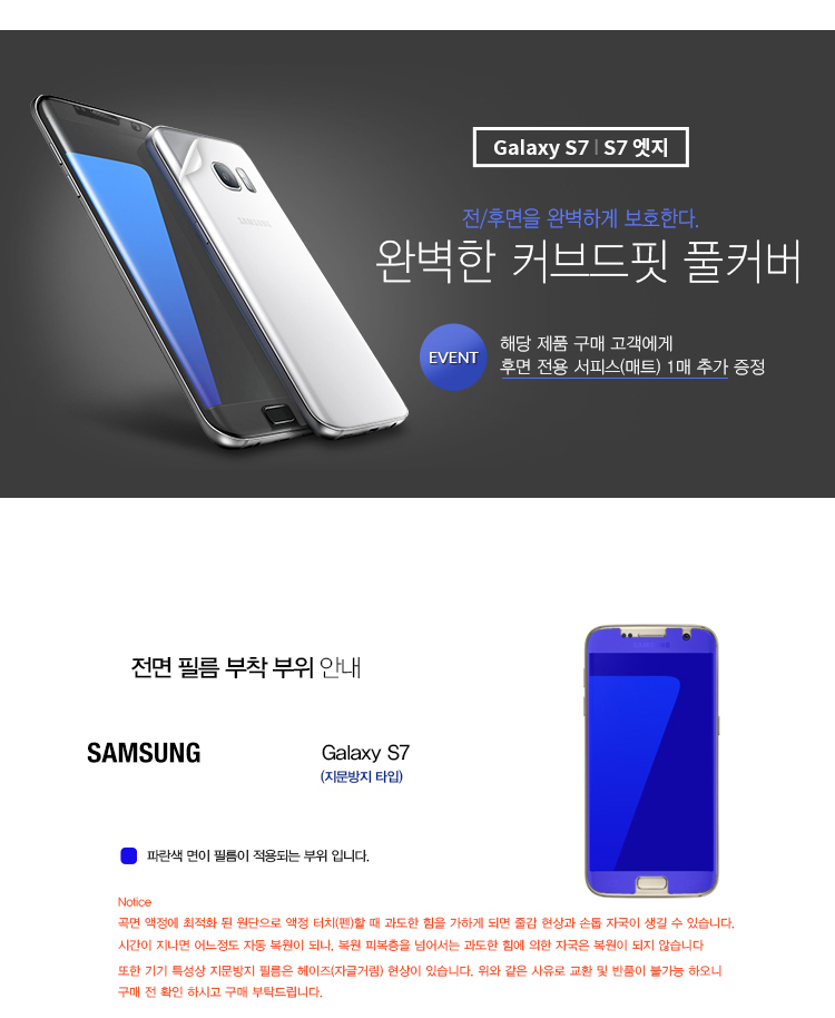 *Galaxy S7 Curved Fit Clear Front 2ea+Back 1ea*