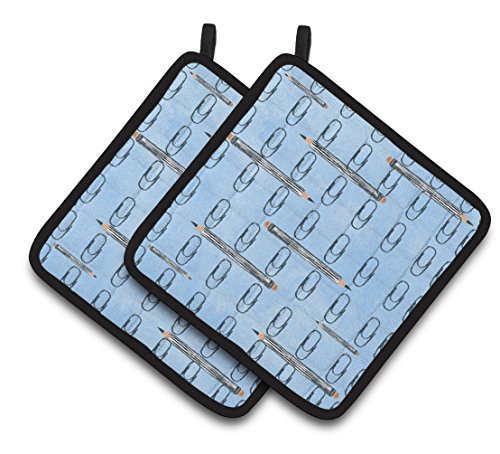 Caroline's Treasures BB7540PTHD Watercolor Organized Paper Clips Blue Decorated Pot Holder, 7.5" x 7.5", Multicolor