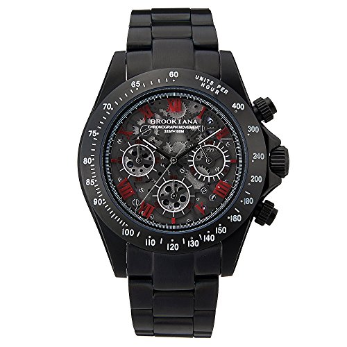[블루《기아나》]BROOKIANA 크로노그래프 올 블랙 메탈×레드 인덱스 기믹(비밀 장치) 페이스 BA2305-BRMBK 맨즈 손목시계