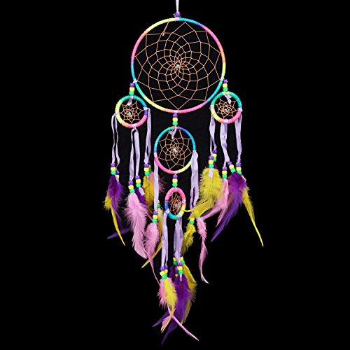 Parma77 Mart Native American Indian Inspired Dreamcatcher Chakras Rainbow Dream Catcher with Feather