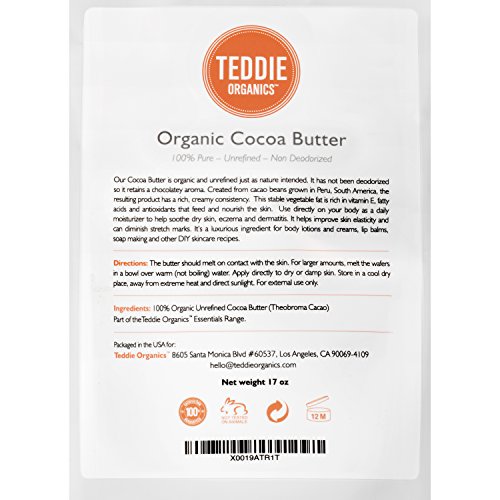 - QUALITY ASSURED FROM TEDDIE ORGANICS – We believe our product is the best cocoa butter for stretch marks, scars, hair, face and skin care. However, if you're not 100% satisfied we will insist on refunding your money. You even get to keep the product so your friends or family can try it out. Grab your pure organic cocoa butter in our best value 17oz size at just over $1 per ounce. Double up using our Multi Buy Discounts