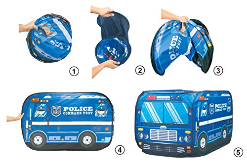 Studio : Liberty Imports Publisher : Liberty Imports Binding : Toy Product Description Let your children spend long creative hours as police officers chasing bad guys safely in their premium police car tent! The flexible supports inside this play tent make setup tool-less and extremely easy. Made of polyester non-woven fabric material, the play tent is durable, strong, and easy to clean. It can be built up easily with simple twists and pop-ups, or folded down to inch flat. Features one opening flap for easy entry or exit, and 2 top openings. In this large Police Car Play Tent you can fit up to 4 kids at once! Children can play with their toys inside, play hide and seek, or use it as a ball pit.