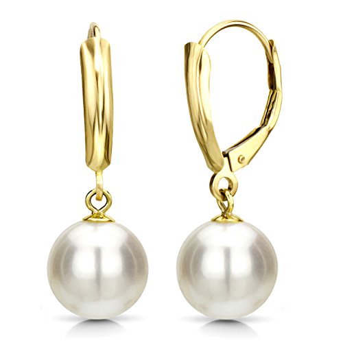 An Elegant 14k White Gold White Round Cultured Freshwater Pearl Lever-back Earring. Included Small Jewelry Gift Box with Bow. We Carry Different Sizes of Pearls and Different Metal Type. Please Contact Us If You Do Not See What You Want. Earrings have always been a fashion symbol for women, and this set glorifies your glam and provides a spark of attraction to your entire ensemble. The Stud Freshwater Cultured High Luster Pearls together with 14K Gold create a design that is artistic as well as appealing. The stud design in the earrings, whether in post-with-friction-back or in screw-back, has been crafted to perfection and showcases an enigmatic appeal that will fulfill your desire of having a revered jewelry item without spending fortunes. These earrings will augment the allure of your collection and elegantly revives your style and personality. Amazing Gift - Available in a beautiful packing, these earrings are one of the loveliest gift items for yourself or your loved ones. Many times, jewels speak the language that is hard to convey orally; these earrings can be effectively used as a coveted gift item that brings instant smile on the recipient's face. The earrings can be worn with any garment for any occasion. You can also gift this set to a friend or relative and make them feel special. This will surely be a gift that they will appreciate and cherish. Exquisitely designed, this earrings come in different pearl sizes. In addition to the size, the set is also available in two metal type options of white gold and yellow gold.Feature