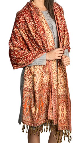 Binding : Apparel Product Description Stunning Jamawar shawl crafted of wool and fine silk. Very soft to touch. Originally detailed with needlework, the imagery on this wool silk shawl is achieved on the loom. The wrap is woven in a rich combination of colors. Ingeniously crafted this piece has been woven with floral paisley patterns and motifs using multi-colored silk-threads. Flirty fringe on both top and bottom. The legendary jamawar style was originally executed with laborious needlework. These ancient textiles were embroidered by hand with such intricate detail that a person could finish only one shawl in his lifetime. Jamawar shawls were not sold, but were given to kings and queens who, in turn, gave the artisan properties according to the worth of the shawl. This wonderfully soft and warm shawl is for those chilly nights. Great to wrap up in when watching TV, going to the game, or store in the car for an emergency. Durable, warm and cozy 0