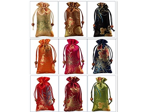 2500 Silk Brocade Double Layer Pouch Jewelry Travel Drawstring Coin Purse Gift Candy Bag 3.1" 9.4" 9pcs/set SND004L
