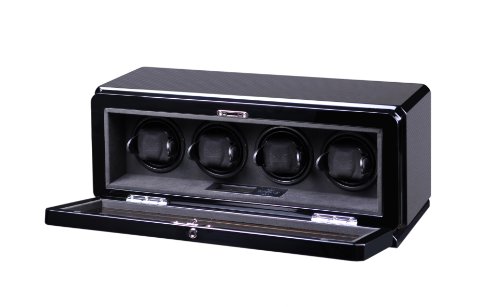 Studio : Volta Roadster Collection Publisher : Volta Roadster Collection Binding : Watch Product Description Volta Lockable Microfiber Suede-Lined LED-Lit 4-Watch Winder with LCD Screen. This Volta quad watch winder features a high gloss finish with an ultra-soft microfiber suede interior and is part of the Roadster Collection. The inside portion of this winder is lit by 8 LED lights that beautifully showcases the watch that is mounted onto the winder. This winder can be locked using the supplied key to ensure the safety of your prized possessions. Each of the watch mounts is powered by its own high quality and ultra-quiet Japanese Mabuchi motor with a beltless construction which will allow you to use your winder for many years. The winder is powered by a supplied 110/240v adapter. To control the motors of the winder, you will find an LCD screen on the inside of the winder. Using the buttons to the right of the screen, you can control the revolution direction and the speed (TPD) of the winder. You are able to select a clockwise setting, a counterclockwise setting, or a combination of clockwise and counterclockwise revolutions. With this Volta winder, you are able to select a speed (TPD) setting of 650, 900, 1350, or 1800 revolutions, so you will definitely be able to find the right setting for your specific watch. This Volta winder features speed winding and sleep mode options. The speed winding options is available for those instances when your watch has completely died and you need to repower it. The sleep mode option allows you to mimic normal day to day wear as the winder will not work for a period of up to 16 hours per day. Each winder has its own serial number and can be registered online at www.voltawinders.com Materials: Wood Dimensions: 18"L x 8"W x 7.25"H Weight: 15.25 lbs 0