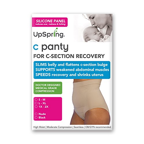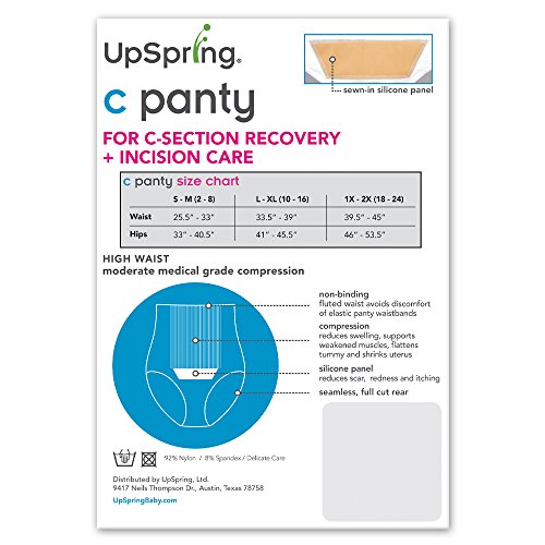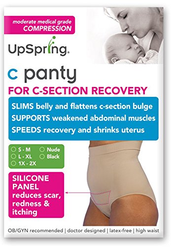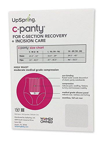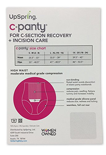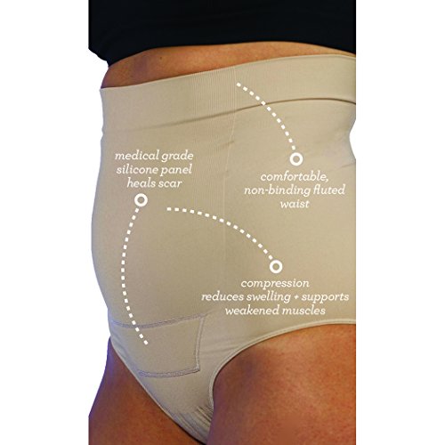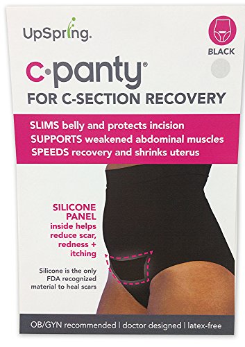 Studio : C-Panty Publisher : C-Panty Binding : Apparel Product Description The only panty designed to speed recovery after a Cesarean section, while slimming post-pregnancy tummies! This full-coverage C-Panty(R) reduces swelling and scarring around the incision, while providing the abdominal support of a belly wrap. What's unique: a silicone compression panel placed over the incision site. Silicone helps skin retain moisture, which minimizes scarring and itching, while compression helps prevent swelling and supports weakened muscles. The gentle waistband rests right below the ribs, eliminating the discomfort of binding waistbands at your mid-section. Designed by a surgeon and two-time C-section mom. See our Sizing tab before ordering. Best for post-op and ongoing C-section recovery, from delivery-one year. Seamless design with no bulk, bands, or Velcro(R). 92% nylon/8% spandex. Latex free. Wash as a delicate. 0