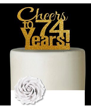 CakeSupplyShop Item#074CTA - 74th Birthday / Anniversary Cheers Super Gold Glitter Sparkle Elegant Cake Decoration Topper