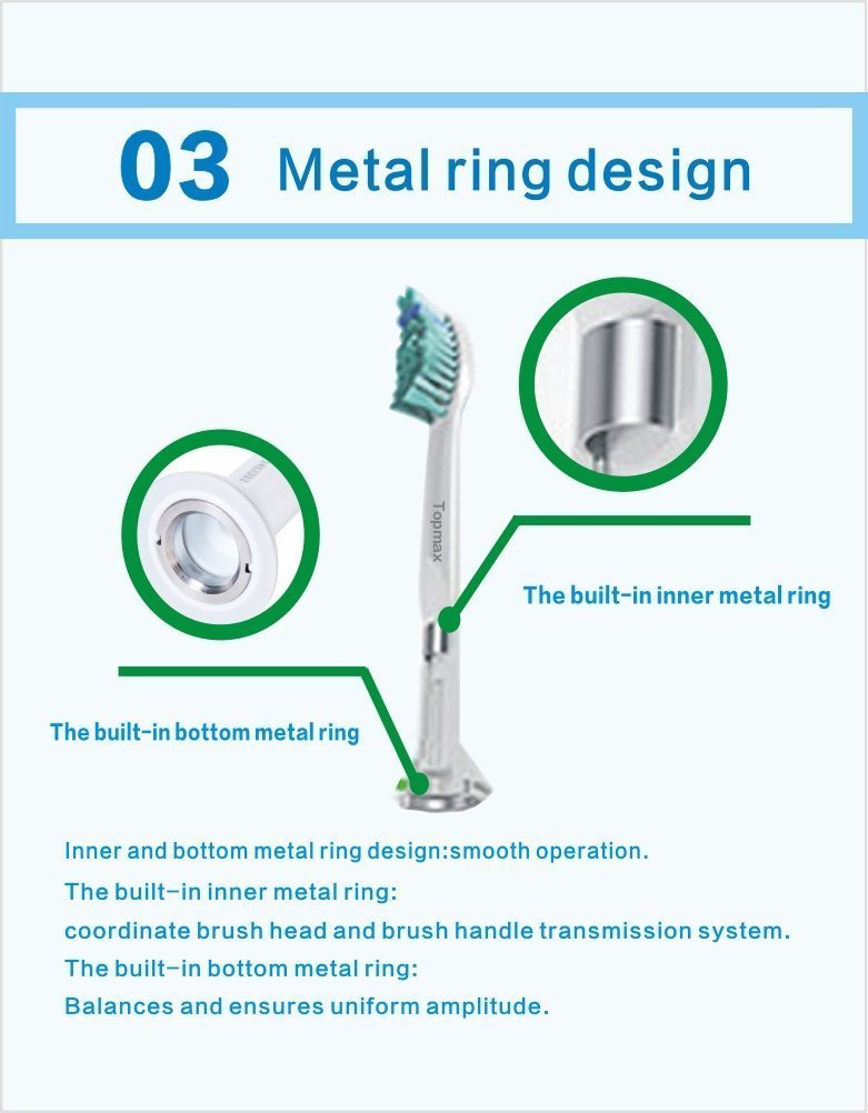 Two metal ring dished, smooth operation: the built-in inner metal ring may adjust the brush head and the brush handle transmission system.