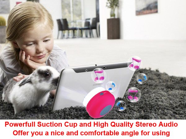 Function 3: If Sticked to your smartphone or tablet pc with its powerful suction cup, the speaker can be used as a holder and offer you a nice and comfortable angle to use your devices.