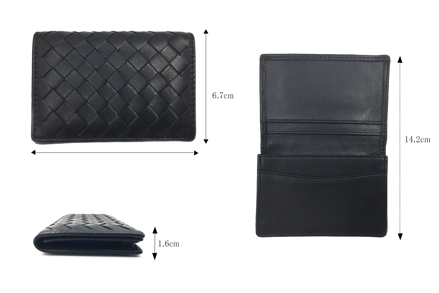 The pattern of the intorechart woven from the vertical and side is stylish, adhering to the material Folded business card holder with genuine leather "Lamb Leather".