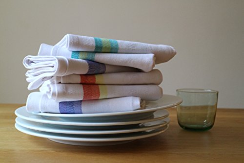 Kitchen Dish Towels set of 12-Tea Towels by Harringdons, 100% cotton. LARGE Dish Cloths 28"x20" soft and absorbent. White with blue, green and red stripes, 4 of each. There's no substitute for QUALITY